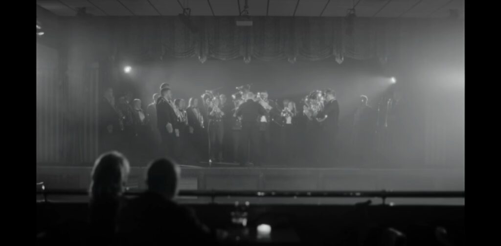 Excuse me? Did you not hear the brass band playing throughout the song? The video even opens with the band playing on stage in a club recreating the moment when his grandparents first met.